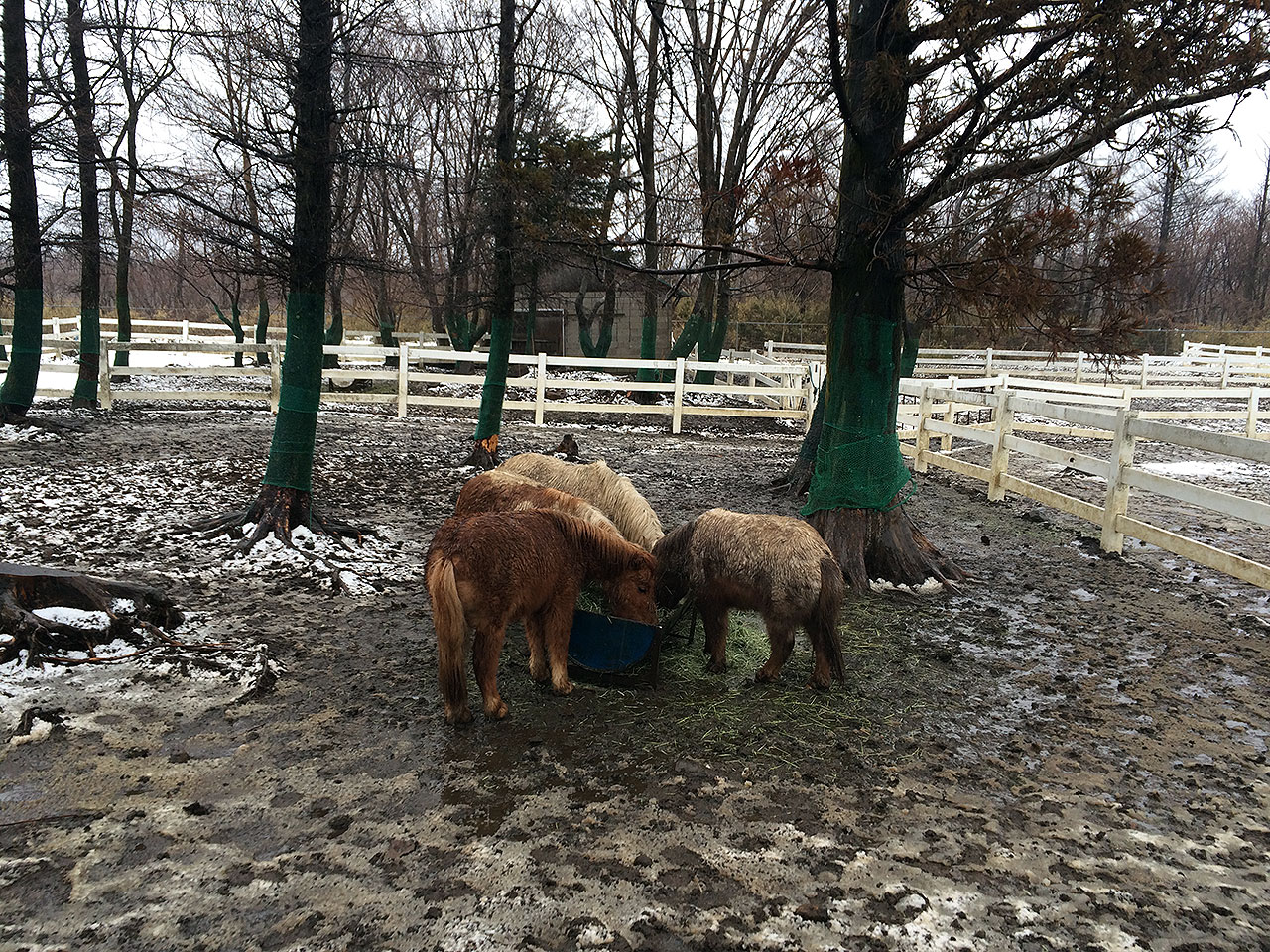 ポニー?ロバ?も反対側におりました。同じく餌を黙々と食べる彼ら。